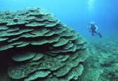 Table-like corals spread in all directions. They suffered a great damage from being bleached 20 years ago, but recovered smoothly and grew to the point of spawning in recent years. They are expanding their habitat.